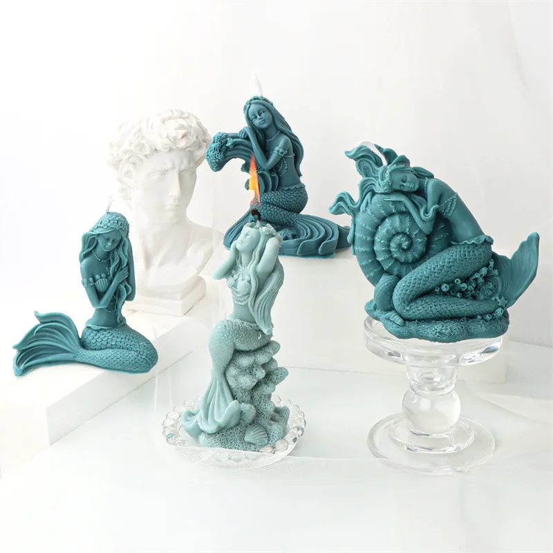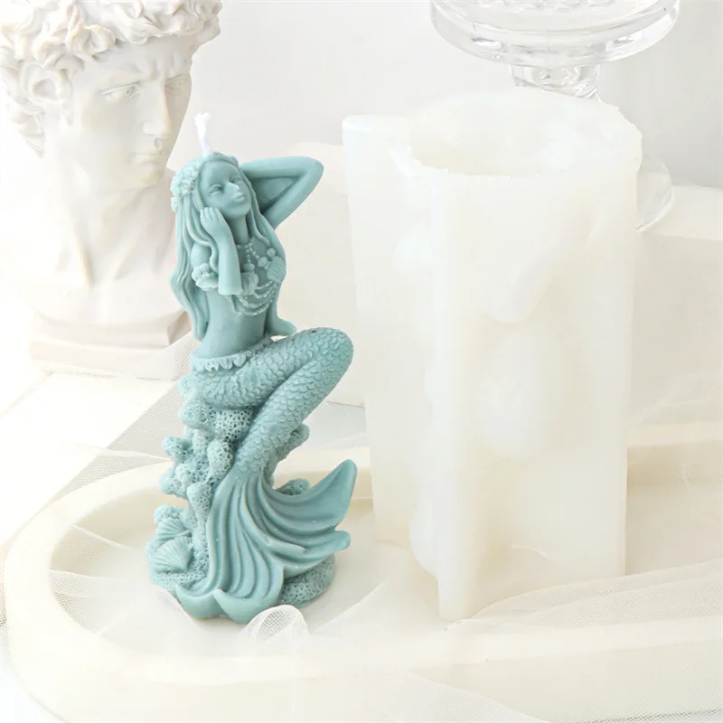 Forma silikonowa do świec wosku mydła odlewów gipsu żywicy syrena siedząca na skale jest łatwa do użycia, a wosk łatwo się z niej wyjmuje, dzięki czemu proces produkcji jest szybki i wydajny.