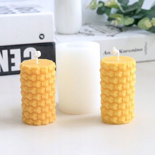 Kształt nowoczesnego walca 3D jest precyzyjnie odwzorowany w formie silikonowej, dzięki czemu wosk jest równomiernie uformowany i ma piękny wygląd.