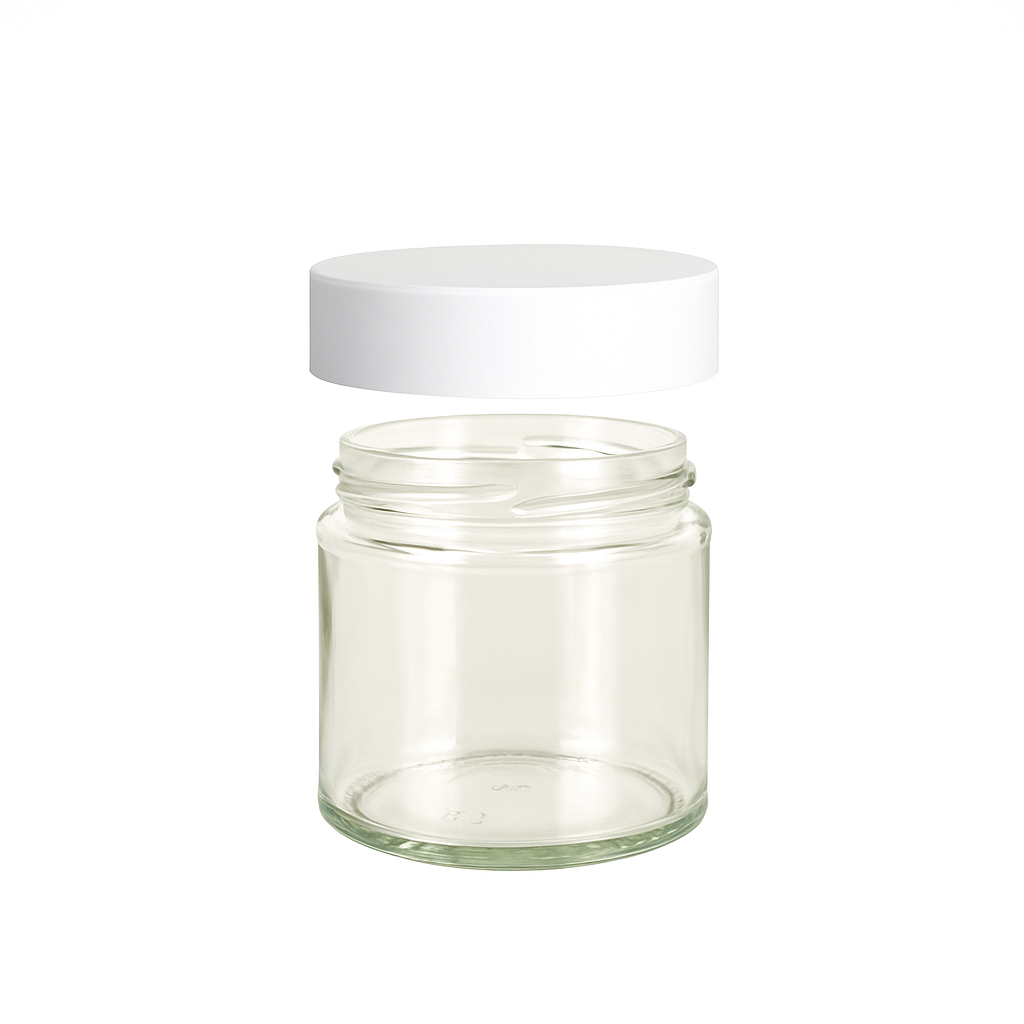 Słoik szklany bezbarwny 120 ml z białą nakrętką na kosmetyki i świece